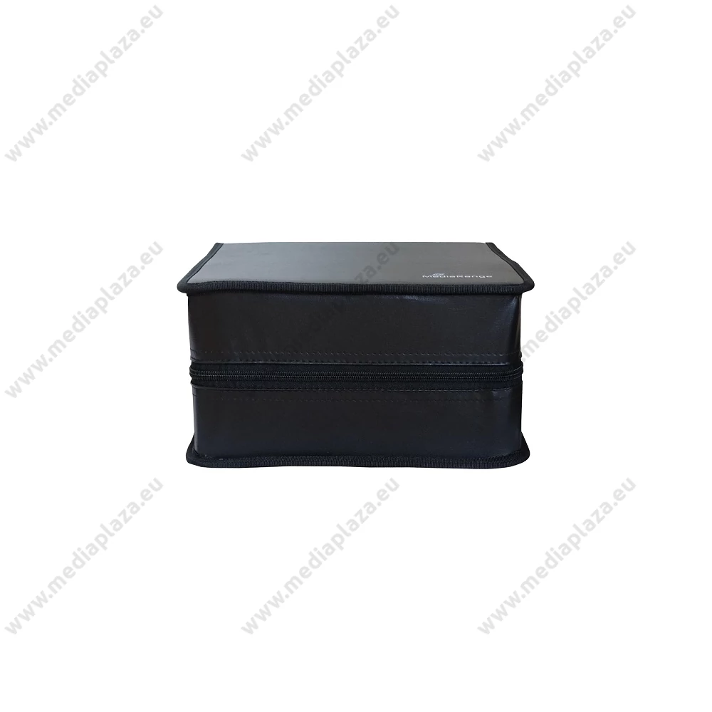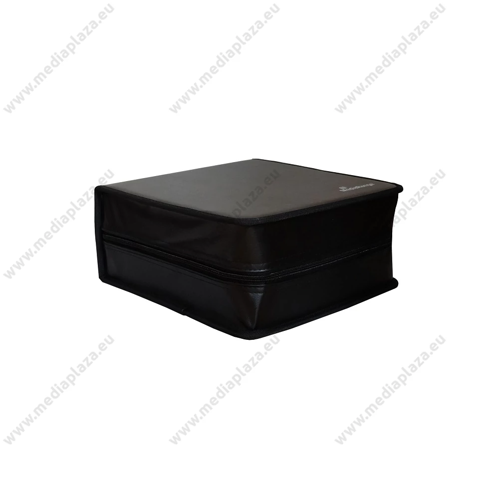 Optikai lemezeink biztonságos tárolásához és szállításához elengedhetetlen kellék egy CD/DVD/Blu Ray tároló táska. A fekete színű műbőrből készült MediaRange CD/DVD/Blu Ray táska 400db optikai lemez biztonságos tárolását teszi lehetővé. A speciális antisztatikus gyapjúval bélelt zsebek optimális védelmet biztosítva megóvják lemezeit a karcoktól és a portól valamint mechanikai behatásoktól. A tokot egy tartós zipzárral lehet zárt állapotban rögzíteni, mely megakadályozza a véletlen kinyitódást. A táska belső felén rugalmas hálós rekesz került kialakításra dokumentumok tárolásához. A tároló méretei: 314mm x 312mm x 149mm. A csomag 1db MediaRange CD/DVD/Blu Ray táskát tartalmaz fekete színben 400db optikai lemezhez.