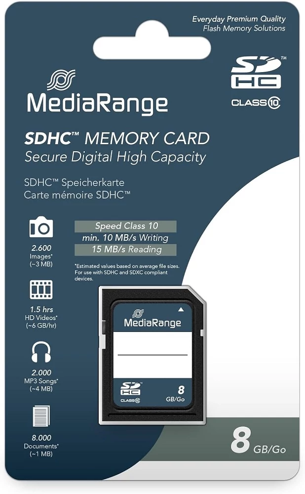 A MEDIARANGE SDHC 8GB (MR962) memóriakártya az alapvető, mégis megbízható tárhelybővítésre készült. Ez egy egyszerű, gazdaságos megoldás az átlagos használatra, kompromisszummentes Class 10 sebességgel.