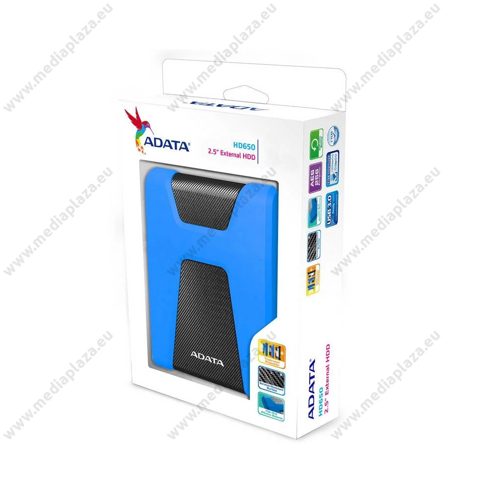 Az egyedi tervezésű, masszív kialakítású, strapabíró Adata HD650 USB 3.0 külső merevlemez segítségével biztonságban tudhatja adatait. Az USB 3.0 SuperSpeed sebességű interfész rendkívül gyors adatátvitelt tesz lehetővé szélsőséges hőmérsékleti értékek mellett is. A sportos megjelenésű ház egyedi szilikon-alapú rezgéselnyelő anyagból készült, katonai szintű ütésállóságot biztosítva az adattárolónak. A burkolat karcálló karbon-szövetborítást kapott, így rendkívüli módon ellenáll a mechanikai sérüléseknek. A nagykapacitású Adata HD650 merevlemez segítségével egyszerűen tárolhatja, szállíthatja és megoszthatja kedvenc filmjeit, zenéit, digitális fényképeit és egyéb digitális formában tárolt adatait. Az élénk kék színű állapotjelző led működéskor keresztülragyog a burkolaton, így egyszerűen nyomon követheti az adatátvitelt. A csomag tartalma 1db 1TB kapacitású Adata HD650 USB 3.0 ütésálló külső merevlemez kék-fekete színben és 1db USB 3.1/USB3.0/USB2.0 adatkábel